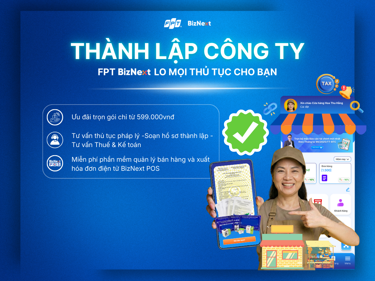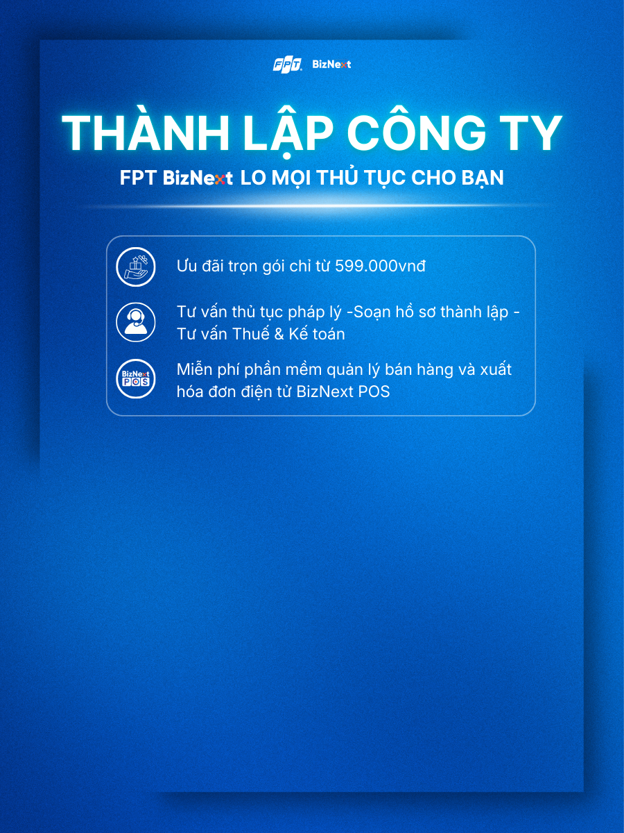 Tiếp nối tinh thần “The Next” đầy khát vọng đổi mới và tiên phong của FPT IS, FPT BizNext ra đời với sứ mệnh đồng hành cùng doanh nghiệp Việt Nam trên hành trình chuyển đổi số toàn diện. Chúng tôi tự hào là đối tác tin cậy, cung cấp các dịch vụ thành lập doanh nghiệp, kế toán, thuế,…và giải pháp công nghệ tiên tiến, giúp doanh nghiệp tối ưu hóa hoạt động, nâng cao năng lực cạnh tranh và bứt phá trong kỷ nguyên số.